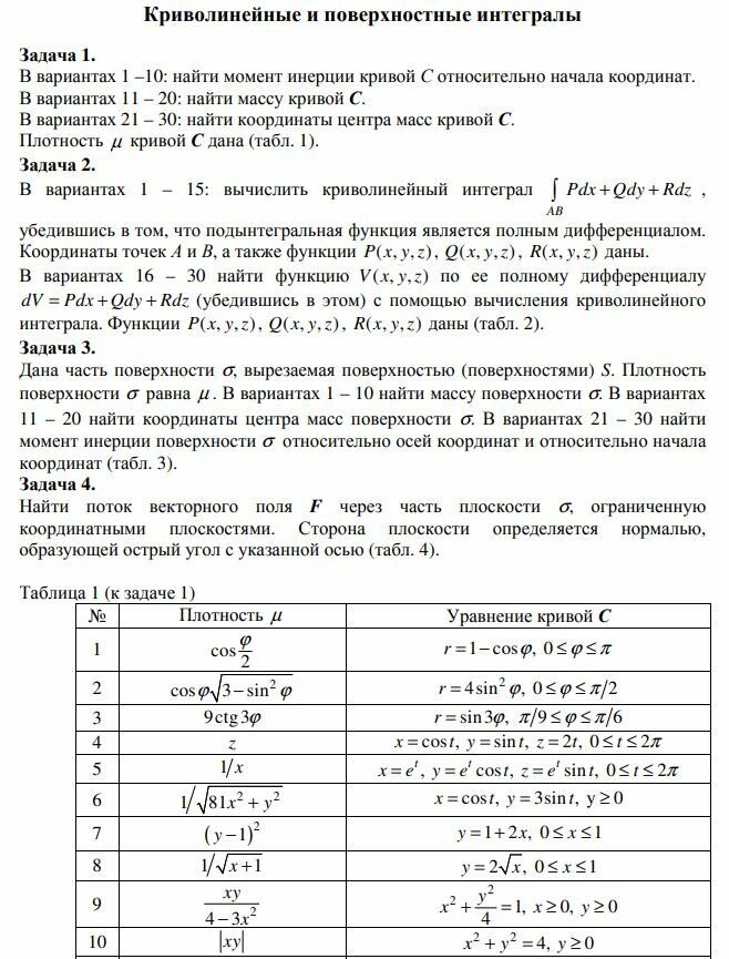 ДЗ 2: Криволинейные и поверхностные интегралы вариант 10