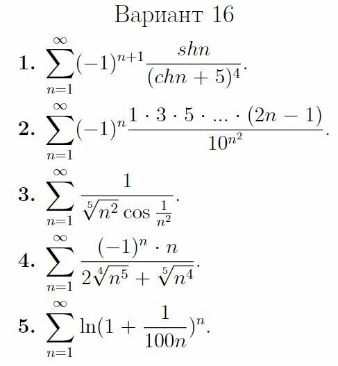 1. Задачи 1-5. Исследовать сходимость данных числовых рядов