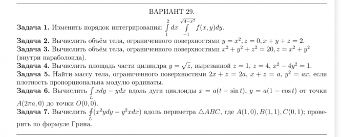 ДЗ 1: Кратные и криволинейные интегралы вариант 29