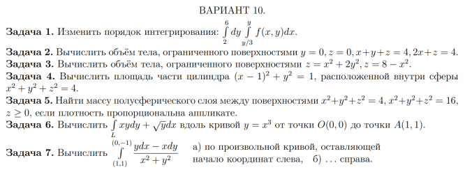 ДЗ 1: Кратные и криволинейные интегралы вариант 10
