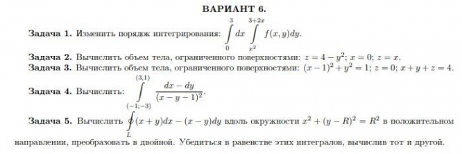 Вариант 6 - ДЗ №1 - "Кратные и криволинейные интегралы" - 5 задач