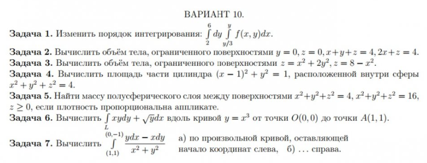 Вариант 10 - ДЗ №1 - "Кратные интегралы" - 7 задач