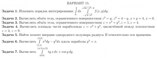 ДЗ 1: Кратные интегралы вариант 15