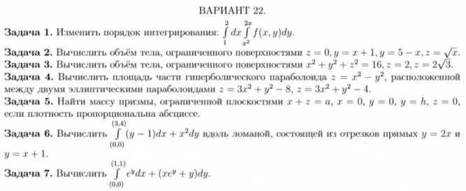 Вариант 22 - ДЗ №1 - "Кратные и криволинейные интегралы" - 7 задач