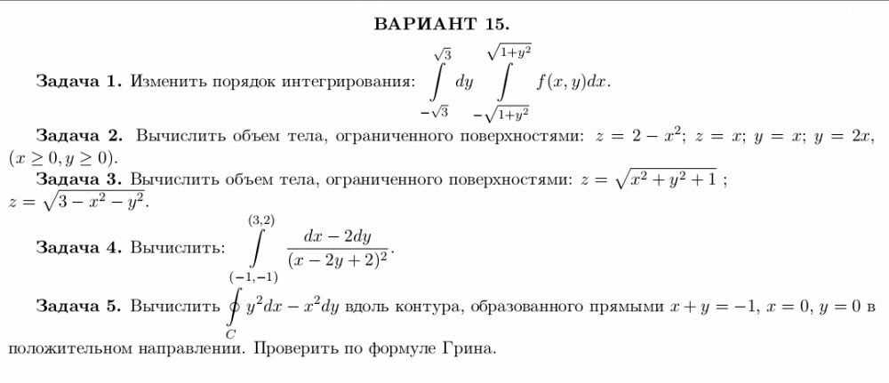 ДЗ 1: Кратные и криволинейные интегралы вариант 15