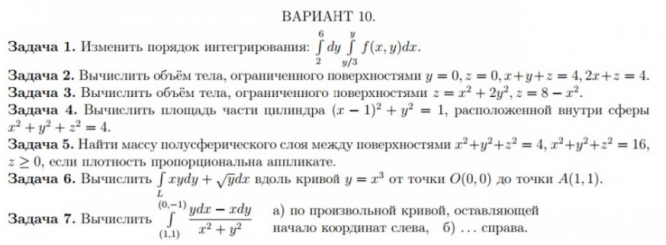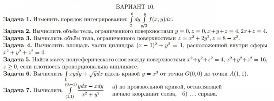 Вариант 10 - ДЗ №1 - "Кратные и криволинейные интегралы" - 7 задач