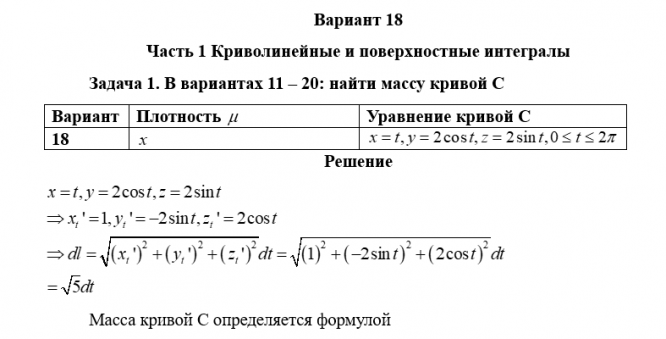 ДЗ 2: Криволинейные и поверхностные интегралы вариант 18