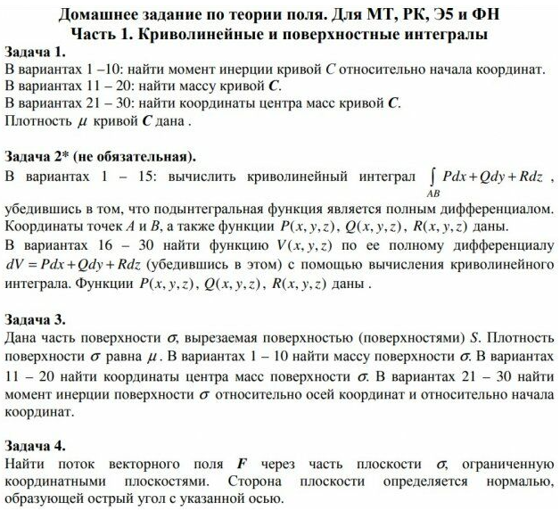 Домашнее задание по матан МГТУ 3 семестр типовик теория поля криволинейные кратные поверхностные интегралы.