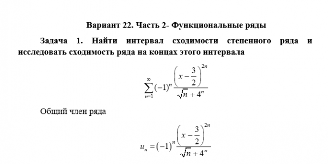 Задач 1. Найти интервал сходимости степенного ряда и исследовать сходимость ряда на концах этого интервала