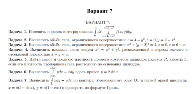 ДЗ 1: Кратные и криволинейные интегралы вариант 7