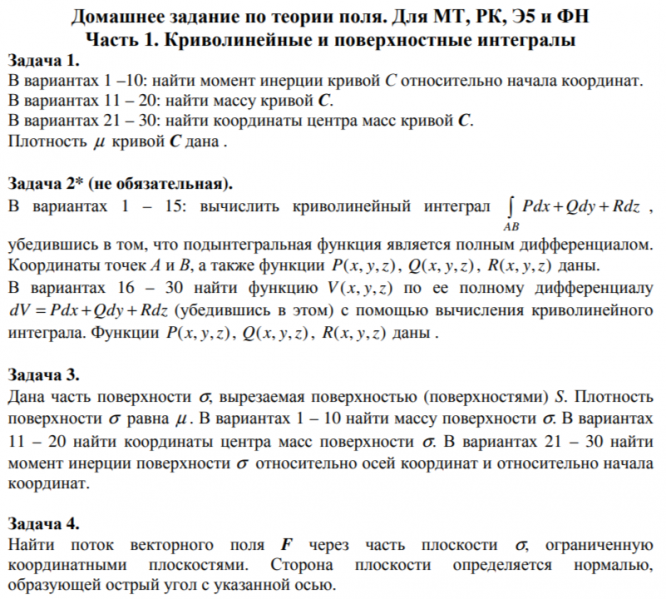 ДЗ 2: Криволинейные и поверхностные интегралы вариант 7