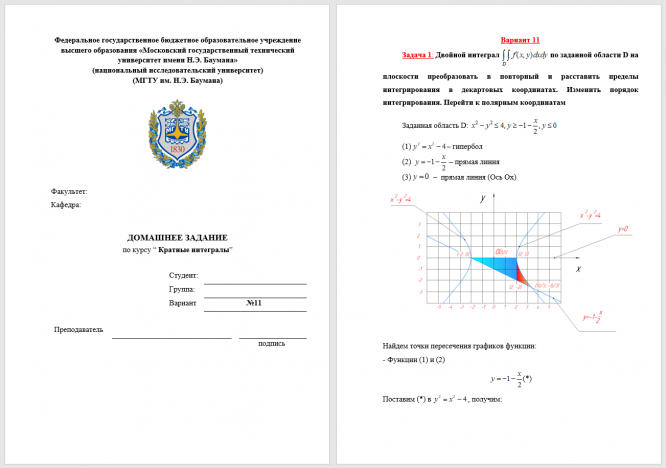 Для студентов МГТУ им. Н.Э.Баумана по предмету Кратные интегралы и рядыКратные интегралыКратные интегралы
