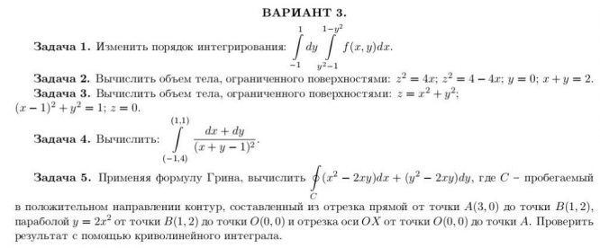 Вариант 3 - ДЗ №1 - "Кратные и криволинейные интегралы" - 5 задач