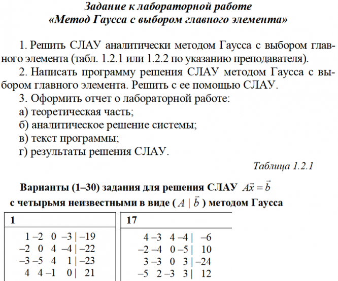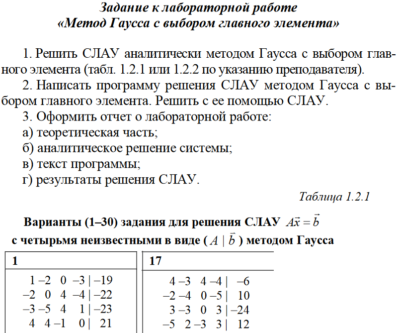 Лабораторная работа 1: ЛР №1 "Метод Гаусса с выбором главного элемента" Python вариант 17