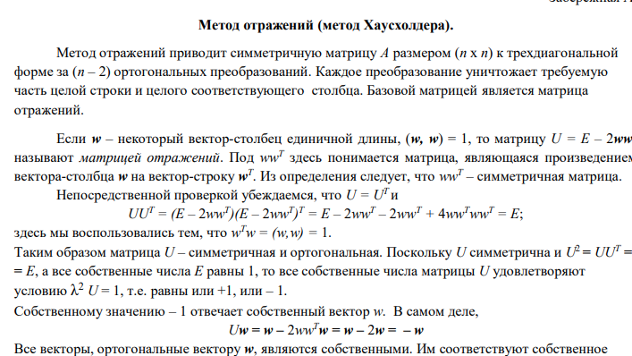 Для студентов МГТУ им. Н.Э.Баумана по предмету Кратные интегралы и рядыЛабораторная работа №1 (Метод отражений -метод Хаусхолдера)Лабораторная работа №1 (Метод отражений -метод Хаусхолдера)