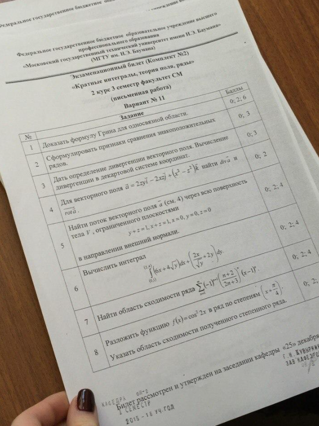 Для студентов МГТУ им. Н.Э.Баумана по предмету Кратные интегралы и рядыБилеты к экзаменуБилеты к экзамену