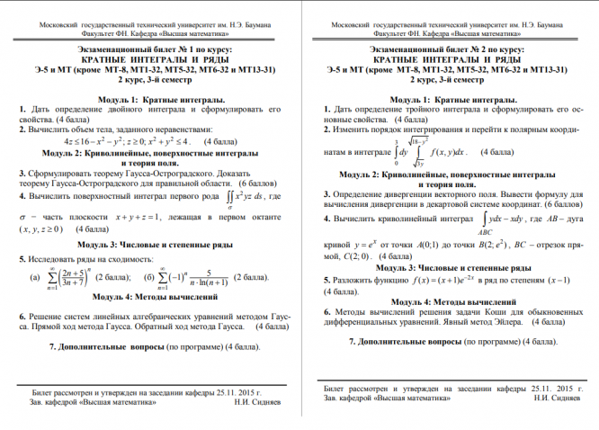 Для студентов МГТУ им. Н.Э.Баумана по предмету Кратные интегралы и рядыРешенные билетыРешенные билеты