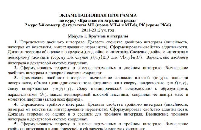 Для студентов МГТУ им. Н.Э.Баумана по предмету Кратные интегралы и рядыВопросы к экзамену по Кратным интегралам, теории поля, рядам и численным методамВопросы к экзамену по Кратным интегралам, теории поля, рядам и численным методам