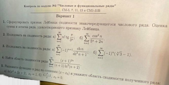 Вопросы/задания к контрольной работе: Числовые ряды вариант 1