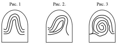 Установите соответствие рисунков ниже и изображенных на них типов папиллярных узоров: