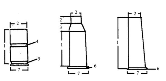 Установите соответствие рисунков ниже и формы изображенных на рисунке гильз: