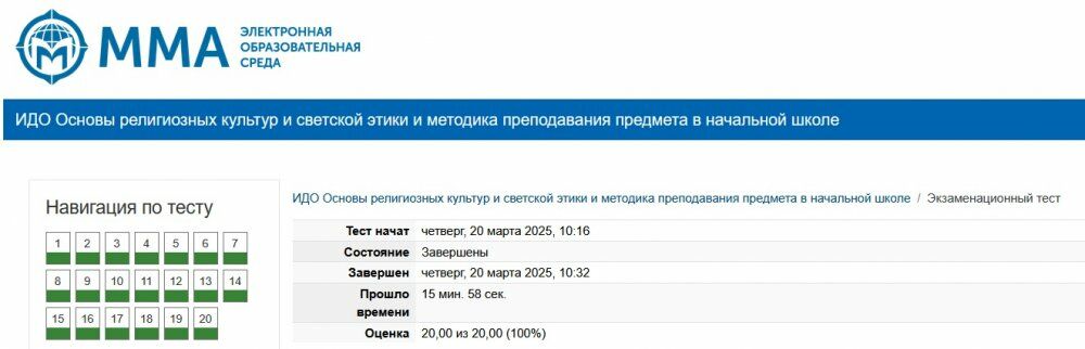 Сборник ответов к экзаменационному тесту по дисциплине Основы религиозных культур и светской этики и методика преподавания предмета в начальной школе ММА.