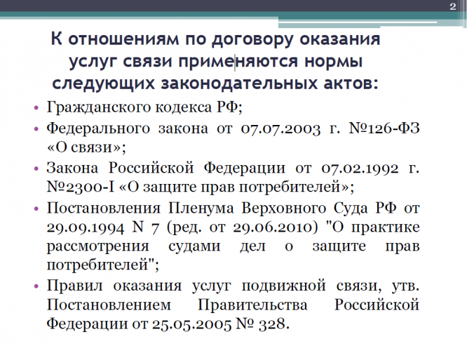 К отношениям по договору оказания услуг связи применяются нормы следующих законодательных актов