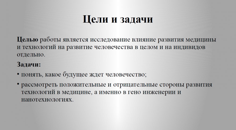 Реферат: Возможные последствия развития технологий в медицине (презентация)