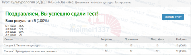 Услуга: Помогу сдать - КМ-2. Динамика и типология культуры. Тестирование