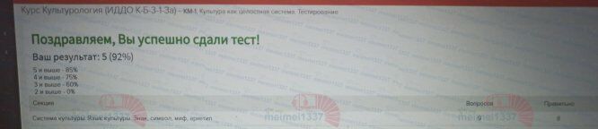 Ответы к заданиям КМ-1: КМ-1. Культура как целостная система. Тестирование - 92%