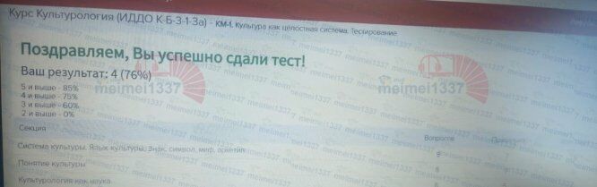 Курс Культурология - КМ-1. Культура как целостная система. Тестирование - 76%