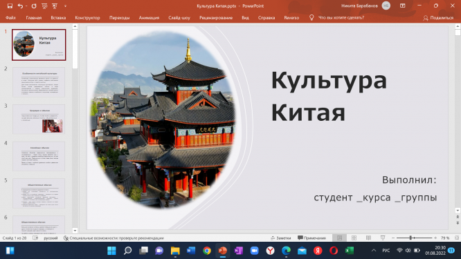 Для студентов РГУФКСМиТ по предмету КультурологияПрезентация на тему "Культура Китая"Презентация на тему "Культура Китая"