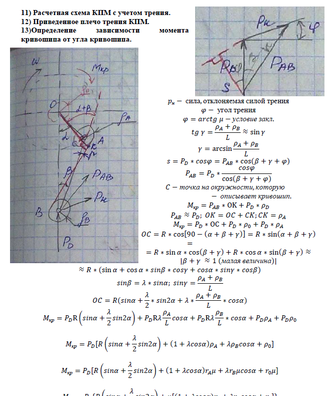 13. Определение зависимости момента кривошипа от угла кривошипа.