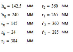 • Определение радиуса расточки r'1 под уплотнение, радиус галтели фланца rф, задание значения наружного радиуса в зоне уплотнения r'2, контактного напряжения σк, расчёт наружного радиуса фланца r3.