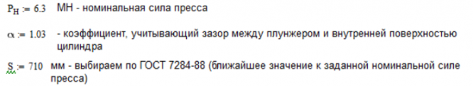 • Определение размеров плунжера и цилиндра rп, r1, r2 и Dн