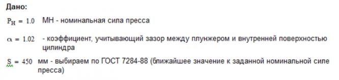 • Определение размеров плунжера и цилиндра rп, r1, r2 и Dн