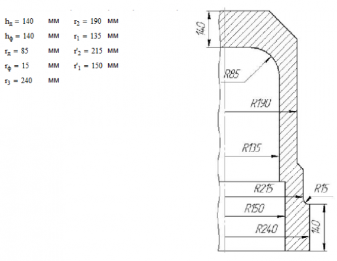• Расчёт напряжения в галтели В днища цилиндра при выбранных значениях коэффициента k3. Сравнить значение эквивалентного напряжения σэкв в галтели В с значением допустимого напряжения σ. Окончательные значения коэффициента k3 и толщины днища hд.