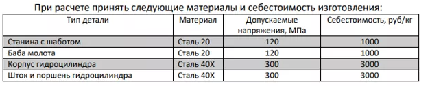 ДЗ 2: Расчет себестоимости гидравлического молота вариант 2
