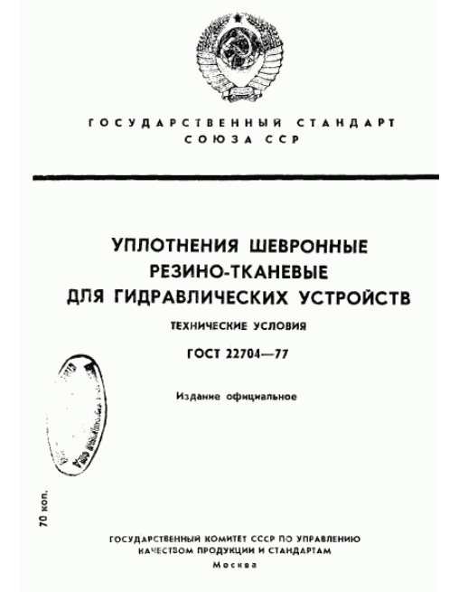 Стандарт: ГОСТ 22704-77 - Уплотнения шевронные резиново-тканевые для гидравлических устройств