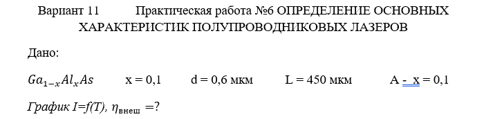 ДЗ 6: ОПРЕДЕЛЕНИЕ ОСНОВНЫХ ХАРАКТЕРИСТИК ПОЛУПРОВОДНИКОВЫХ ЛАЗЕРОВ вариант 11