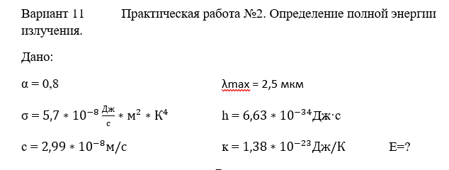ДЗ 2: Определение полной энергии излучения вариант 11