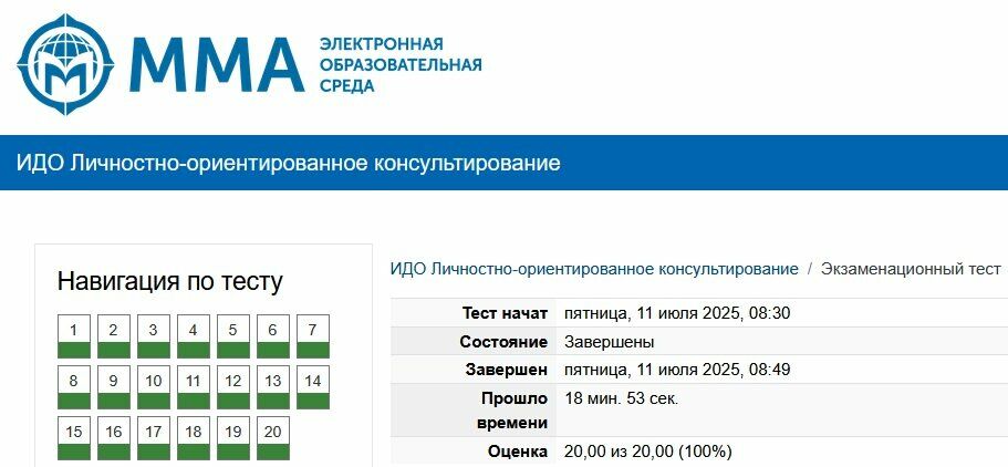 Сборник ответов к экзаменационному тесту Личностно-ориентированное консультирование ММА.