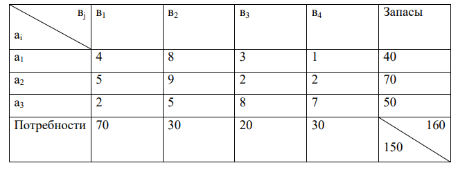 Для студентов по предмету Линейное программированиеТранспортная задача задана таблицейТранспортная задача задана таблицей