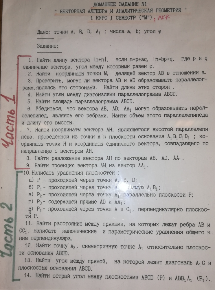 Ответы к заданиям 1: Векторная алгебра и аналитическая геометрия вариант 4