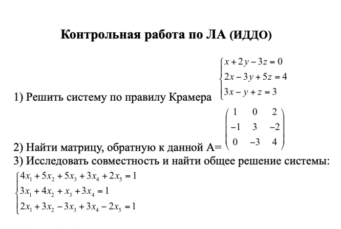 Для студентов ИДДО НИУ «МЭИ» по предмету Линейная алгебра и аналитическая геометрияКонтрольная работа по Линейной алгебре (ИДДО)Контрольная работа по Линейной алгебре (ИДДО)