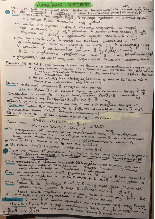 Для студентов МГТУ им. Н.Э.Баумана по предмету Линейная алгебра и аналитическая геометрияТеория к экзаменуТеория к экзамену