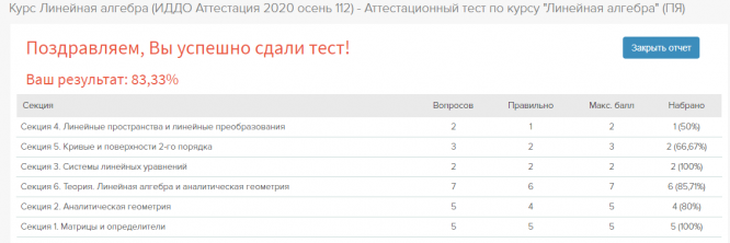 Ответы к экзамену: Аттестационный тест по курсу "Линейная алгебра" (ПЯ) (ИДДО)