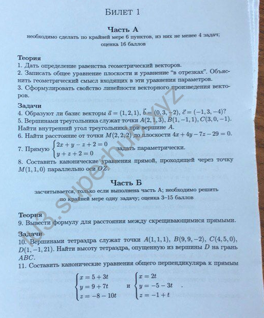 Для студентов МГТУ им. Н.Э.Баумана по предмету Линейная алгебра и аналитическая геометрияРК №1 - БилетыРК №1 - Билеты