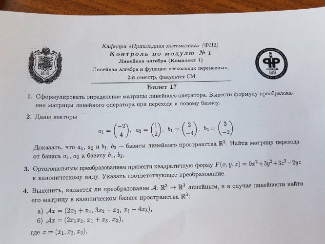 Для студентов МГТУ им. Н.Э.Баумана по предмету Линейная алгебра и аналитическая геометрияРешения билетовРешения билетов
