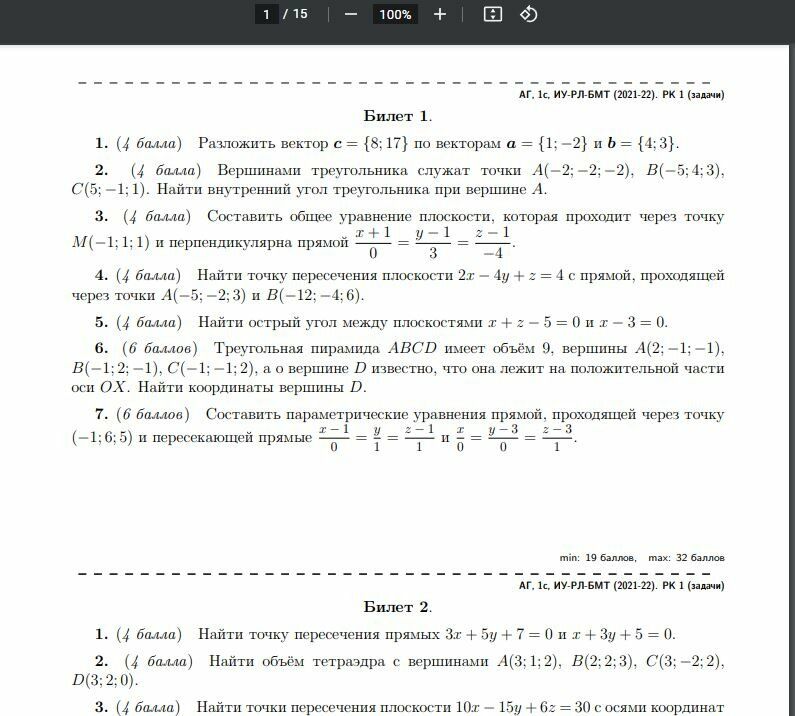 Для студентов МГТУ им. Н.Э.Баумана по предмету Линейная алгебра и аналитическая геометрияБилетБилет